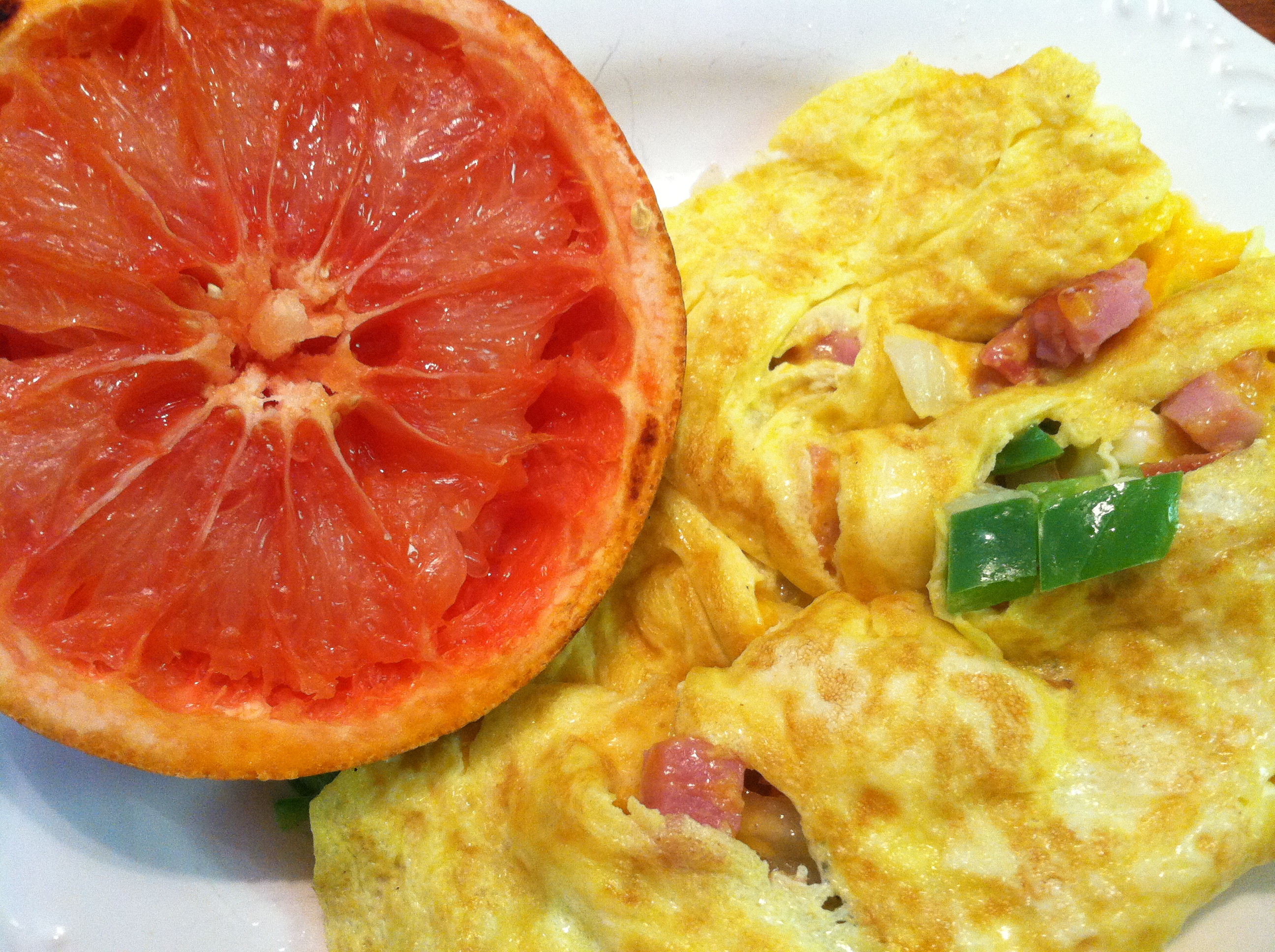 I served my omelette with half a grapefruit and some coffee. It was oh so cheesy–I loved it.