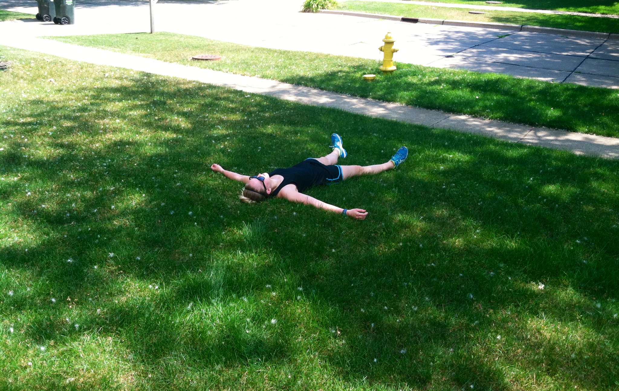 I knew that I wanted to lay down within 2 minutes of running. Sadly, I had 46 more minutes to go. The minute I hit that 5 mile mark and was back at my house, I promptly took a doze on my front lawn. It was shady and magical. (Tree shady, not stalker shady…although I’m sure to passersby I was that kind of shady as well).