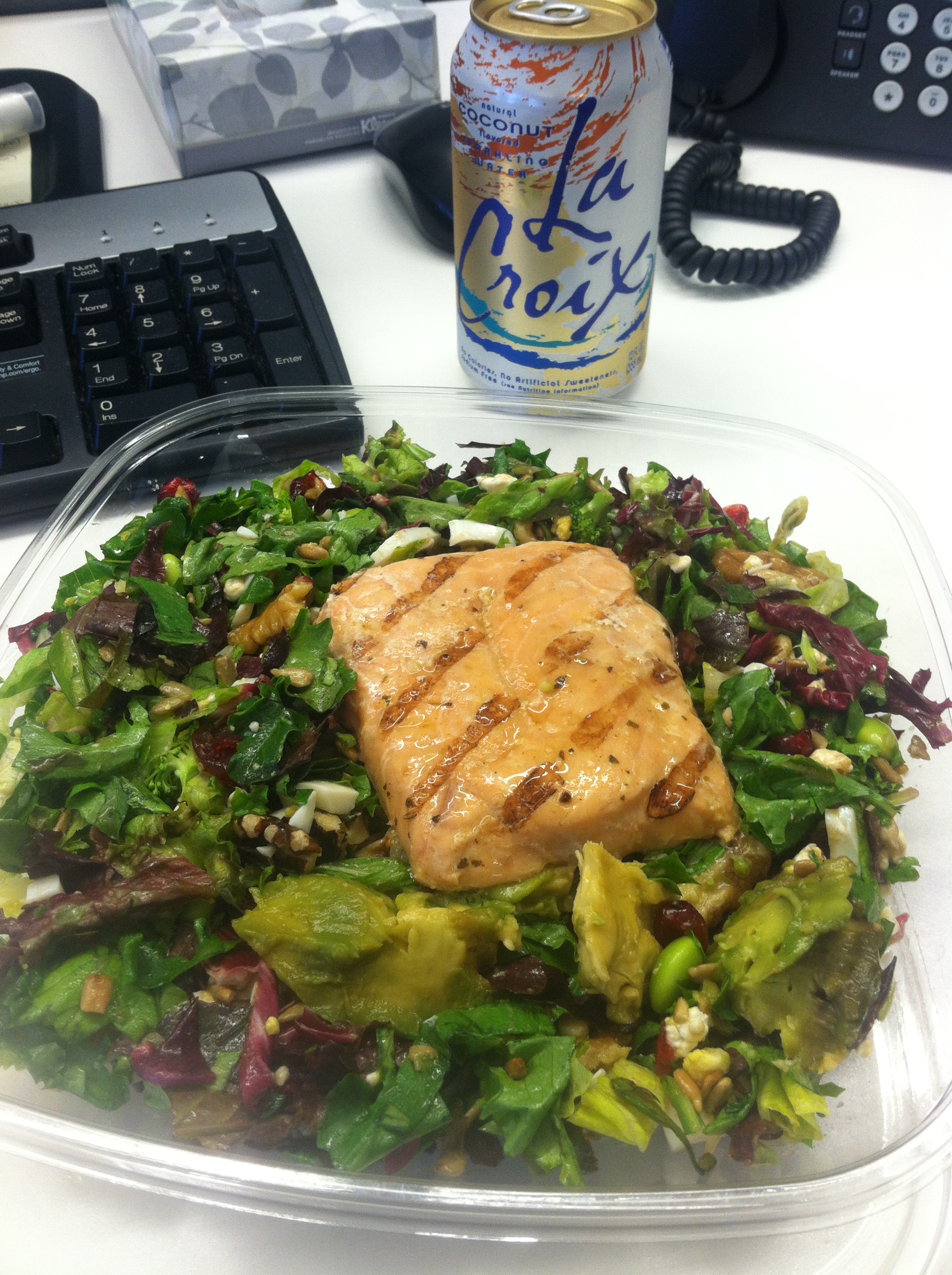 Am I the only one who almost always forgets to snap a picture of my lunch? I’m so good about breakfast, dinner and snacks, but whenever lunch rolls around I’m just like GET IN MA BELLY. This lunch is an exception, though, because it’s a $15 DOLLAR SALAD. It pains me to buy it but sometimes I just crave it. It’s the signature chopped salad from Freshii and includes basically everything but the kitchen sink: field greens, edamame, sunflower seeds, goat cheese, walnuts, dried cranberries, avocado, broccoli, egg whites, salmon and balsamic vinaigrette. Eating this salad is the equivalent of climbing Mount Everest, in my opinion. So rewarding.