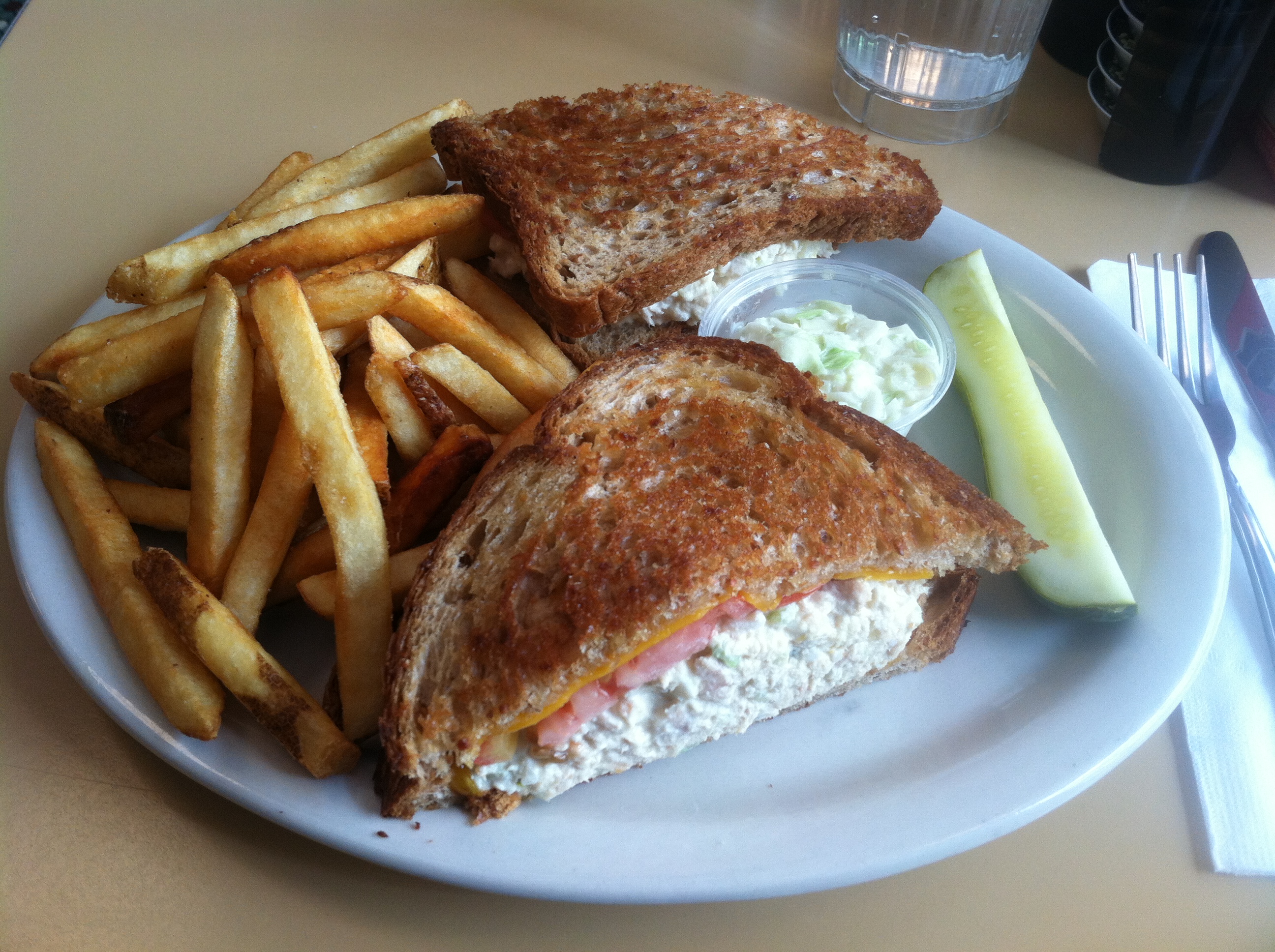 My favorite lunch this weekend came in the form of what else but a TUNA MELT 🙂 Very few foods get me as happy as a big, gooey tuna melt. Zain and I biked to visit our new apartment in Lincoln Park and found this little diner right next to our new place and decided to stop in. It’s already been decided that this will be our new place after church on Sundays.