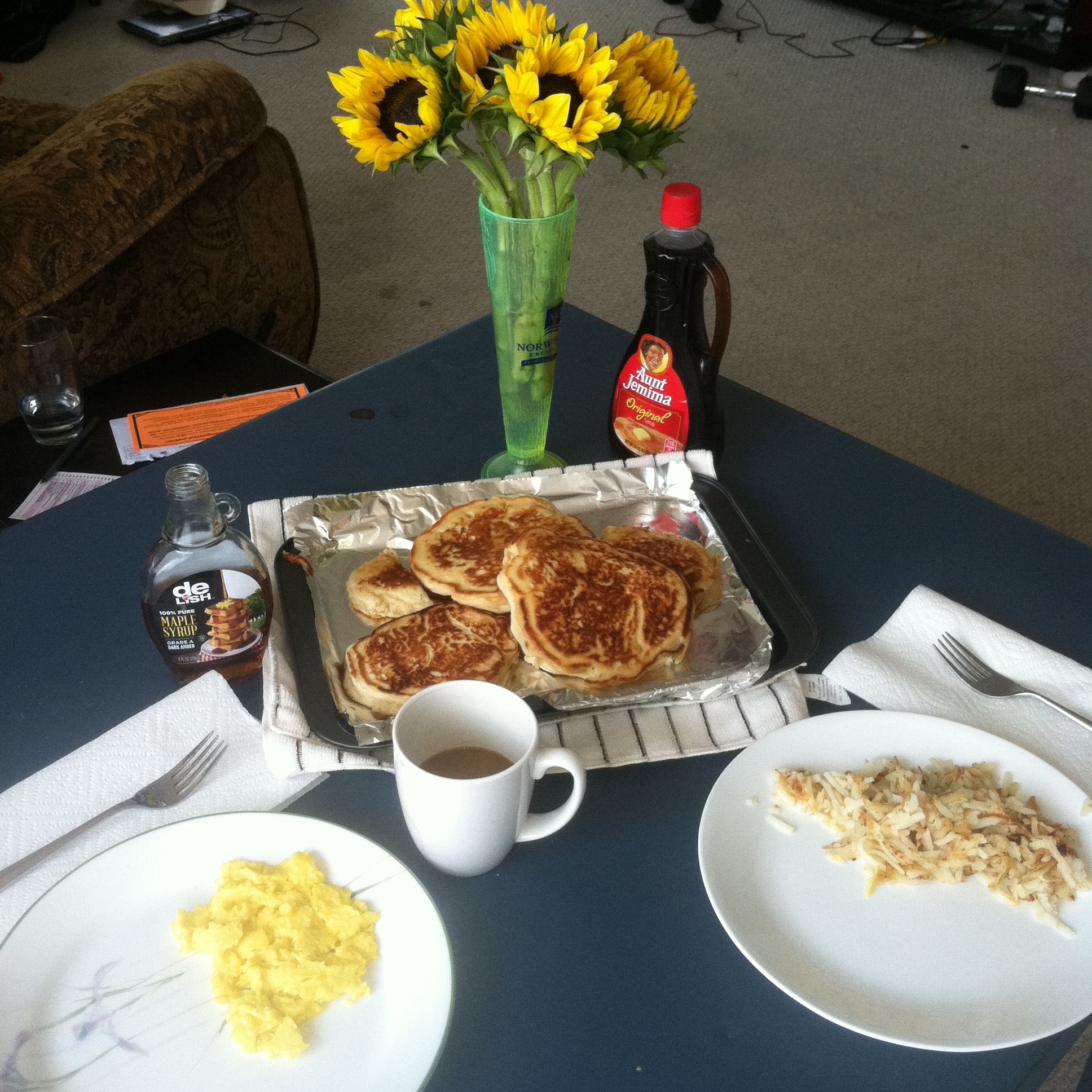 And since I didn’t share pictures from this past weekend I have to show you the brunch I made for Zain and me on Sunday. Eggs, hash browns, and homemade pancakes. I woke up bright and early (10am lol) Sunday morning, biked to Trader Joe’s, got the supplies (and the flowers) and made a nice meal just because. It put me in an amazing mood all day just to have spent some time cooking.