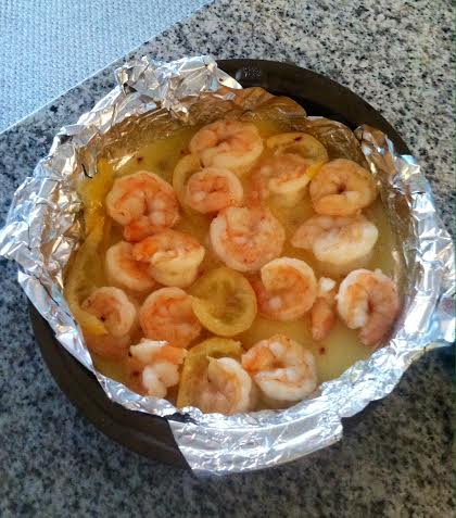 - Arrange the shrimp on top of the lemon/butter mixture. Stir around so all the shrimp is getting some butter action.